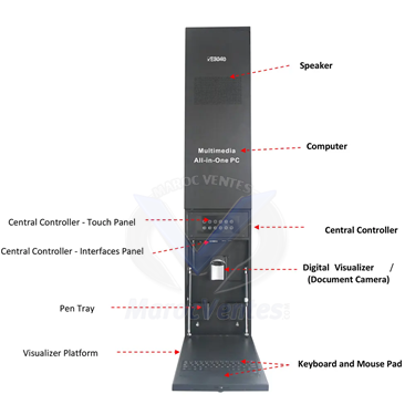 Le PC tout-en-un multimédia se compose d'une armoire en acier métallique, de haut-parleurs amplificateurs audio intégrés, d'un ordinateur OPS, d'un contrôleur central intelligent, d'un visualiseur numérique, d'un clavier intégré et d'un pavé tactile.