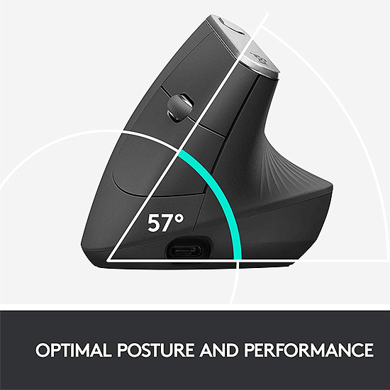 La souris MX Vertical a été conçue et testée sur la base de critères élaborés par les meilleurs ergonomes afin d'améliorer la posture, de réduire les contraintes musculaires et la pression exercée sur le poignet.