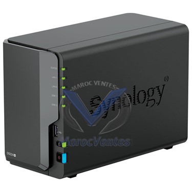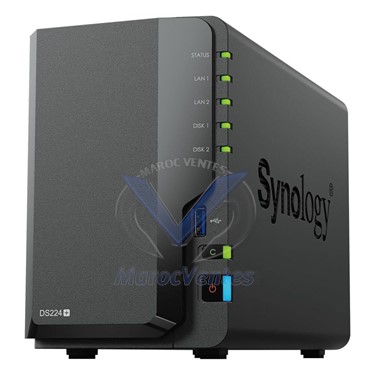 Deux baies de disques durs : Le DS224+ est équipé de deux baies de disques durs, ce qui permet une capacité de stockage allant jusqu’à plusieurs téraoctets. Il prend en charge une variété de configurations RAID pour la redondance des données et la performance accrue.