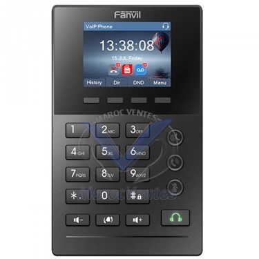 • LCD: 2.8 inch (320x240) color-screen• Keypad: 23 keys, including4 Soft-keys3 Function keys12 Standard Phone Digits keys2 Volume Control keys, Lower/Increase(Left/Right)1 Volume Select key, (Down)1 Headset key• 1.5M CAT5 Ethernet Cable x1• 3.5mm port x2: Headset x1, Foot pedal x1• RJ9 port x2: Headset x1, Monitor earphone x1• RJ45 Ethernet Port x2: Network x1 (802.3AF POE Class 1 Enabled),PC x1 (Bridged to Network)Main Chipset: Broadcom• DC Power Input: 5V / 0.6A• Power Consumption: Idle – 0.9~1.6W, Peak – 1.6~2.5W• Working Temperature: 0~40℃• Working Humidity: 10~65%• Back Rack x1: Desktop Stand• Color: Black• Gift Box Dimensions: 197x110x62mm (L x W x H) - Plus d'images (5)