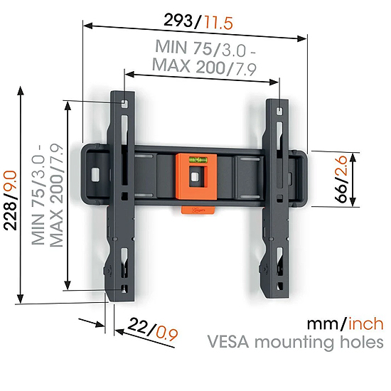 Support TV Fixe De 19 à 50 pouces jusqu'à 30 kg. Écart minimal avec le mur (seulement 2,2 cm) SoftLock™ : sécurisez votre téléviseur en toute simplicité Niveau à bulle fourni. (VOGELS TVM 1205)