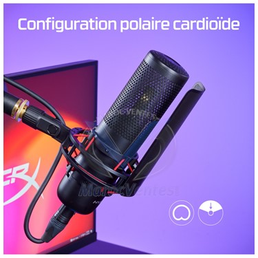 Grand condensateur pour une excellente performance sonoreLa conception du ProCast permet d'obtenir une meilleure précision dans les hautes fréquences par rapport aux microphones à électret et dynamiques, et d'améliorer les performances dans les basses fréquences par rapport aux condensateurs à petit diaphragme.Configuration polaire cardioïde pour l'enregistrement soloLa configuration polaire cardioïde accentue les sons à l'avant du micro, ce qui le rend parfait pour les voix off, le streaming, les voix, les podcasts ou tout autre enregistrement audio à source unique.Connexion XLR de qualité professionnelleLe ProCast nécessite une alimentation fantôme de 48 V, alors connectez-le via un câble XLR à des interfaces professionnelles ou à des préamplis pour démarrer votre enregistrement.Filtre amovible HyperX Shield inclusIl suffit de fixer le filtre HyperX sur le support antichoc inclus du ProCast pour filtrer les bouffées d'air plosives qui résultent des sons p.Support anti-vibration intégré