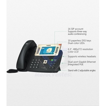 Le nouveau téléphone IP Yealink T29G a jusqu'à 16 comptes SIP, ainsi que 2 ports Gigabit Ethranet. Offre la possibilité de connecter plusieurs périphériques tels qu'un  casque Bluetooth avec l'option dongle USB. Il dispose également d'un port USB. Son support de pied intégré avec 2 angles réglables permet le placement en fonction de l'utilisateur ou si vous préférez, vous pouvez aussi son montage mural.